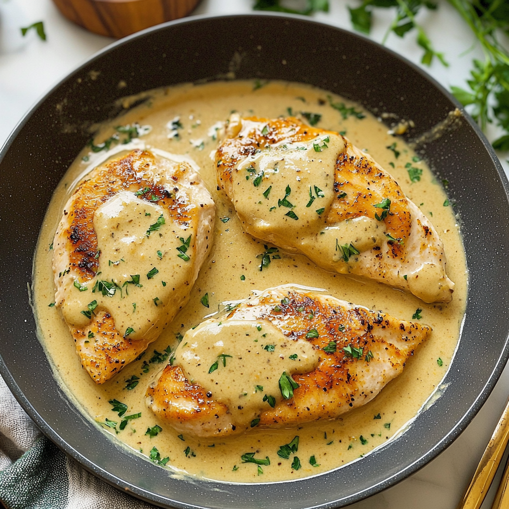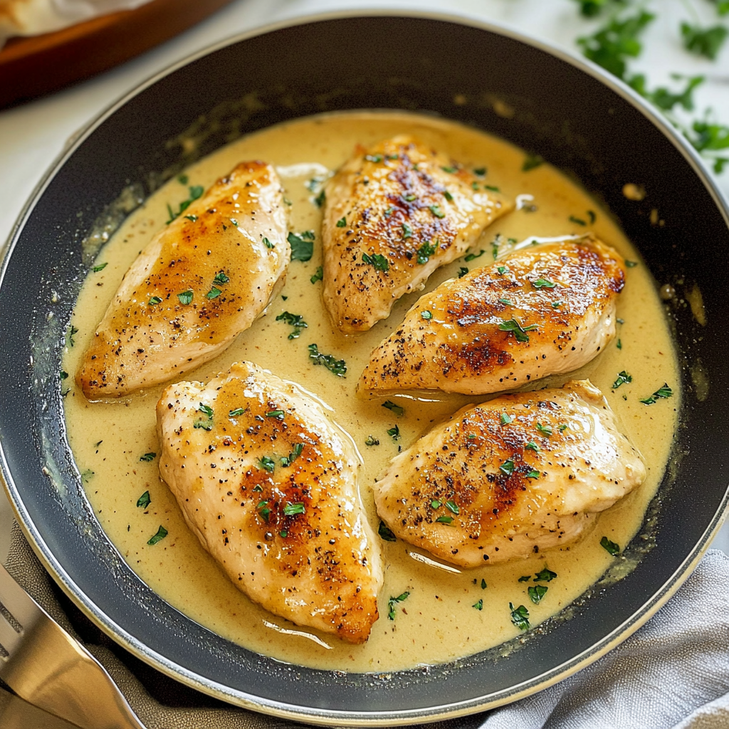 Sear the chicken breasts over medium-high heat until golden brown, then simmer gently in the creamy sauce for maximum flavor absorption and juiciness. For more inspiration, check out this creamy garlic chicken recipe recipe.