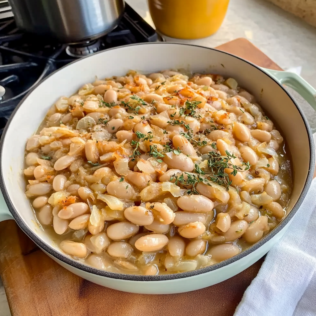 - French Onion White Beans offer a delightful twist on classic flavors