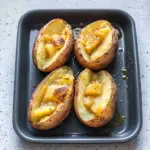 Prepare the Potatoes: Start by scrubbing each russet potato under running water until it’s squeaky clean. Pat them dry with a towel; moisture doesn’t mix well with crispy skin.