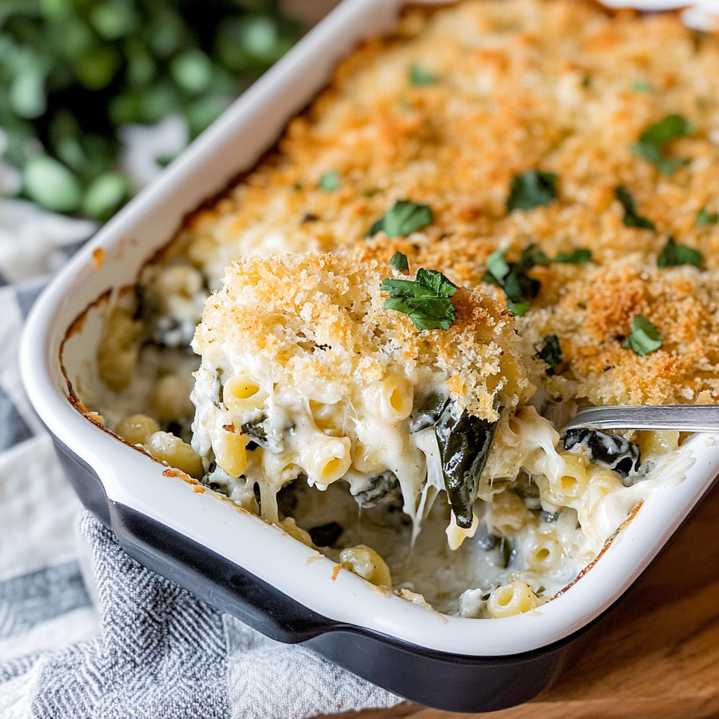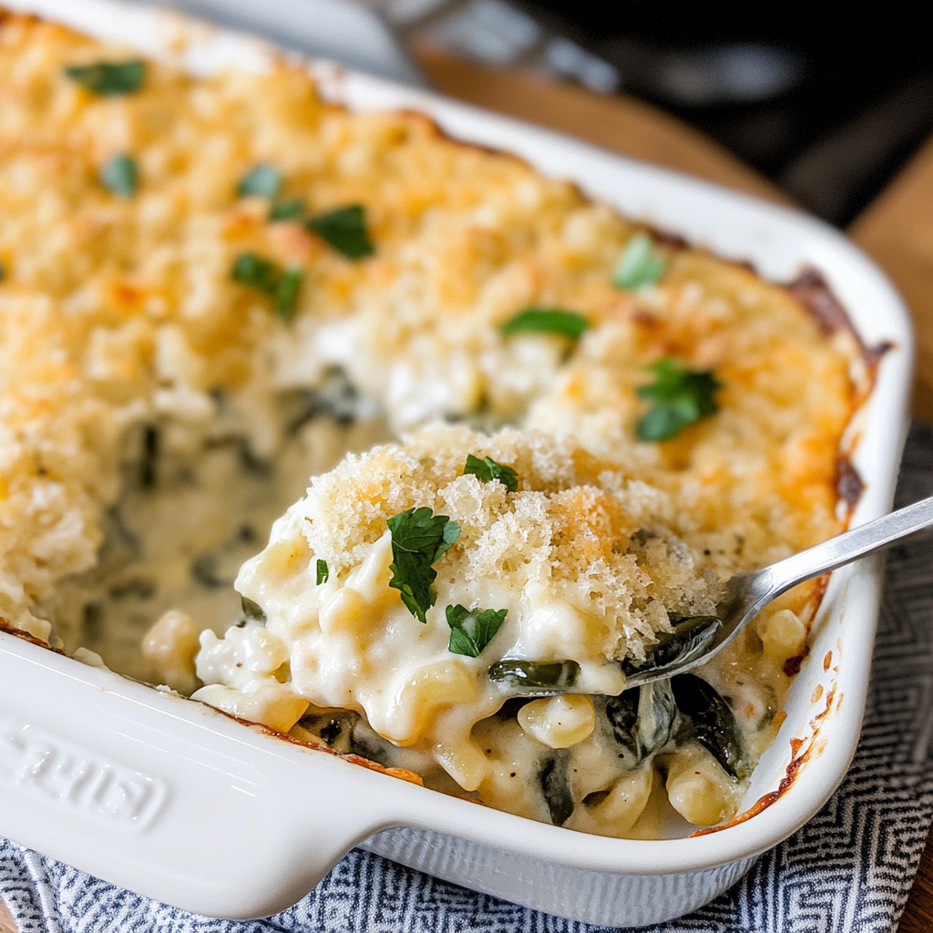 - Transfer to a greased baking dish, top with remaining cheese and breadcrumbs, and bake at 375°F (190°C) for about 25 minutes until golden brown.