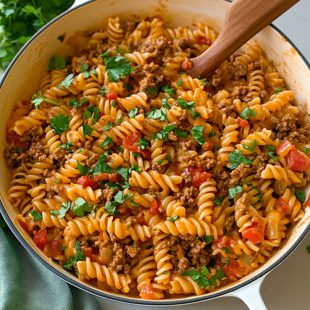 Toss in Pasta & Cheese : Drain your pasta (don’t forget to save some pasta water) and combine it with the beef mixture. Stir in shredded cheddar cheese until melted and gooey.